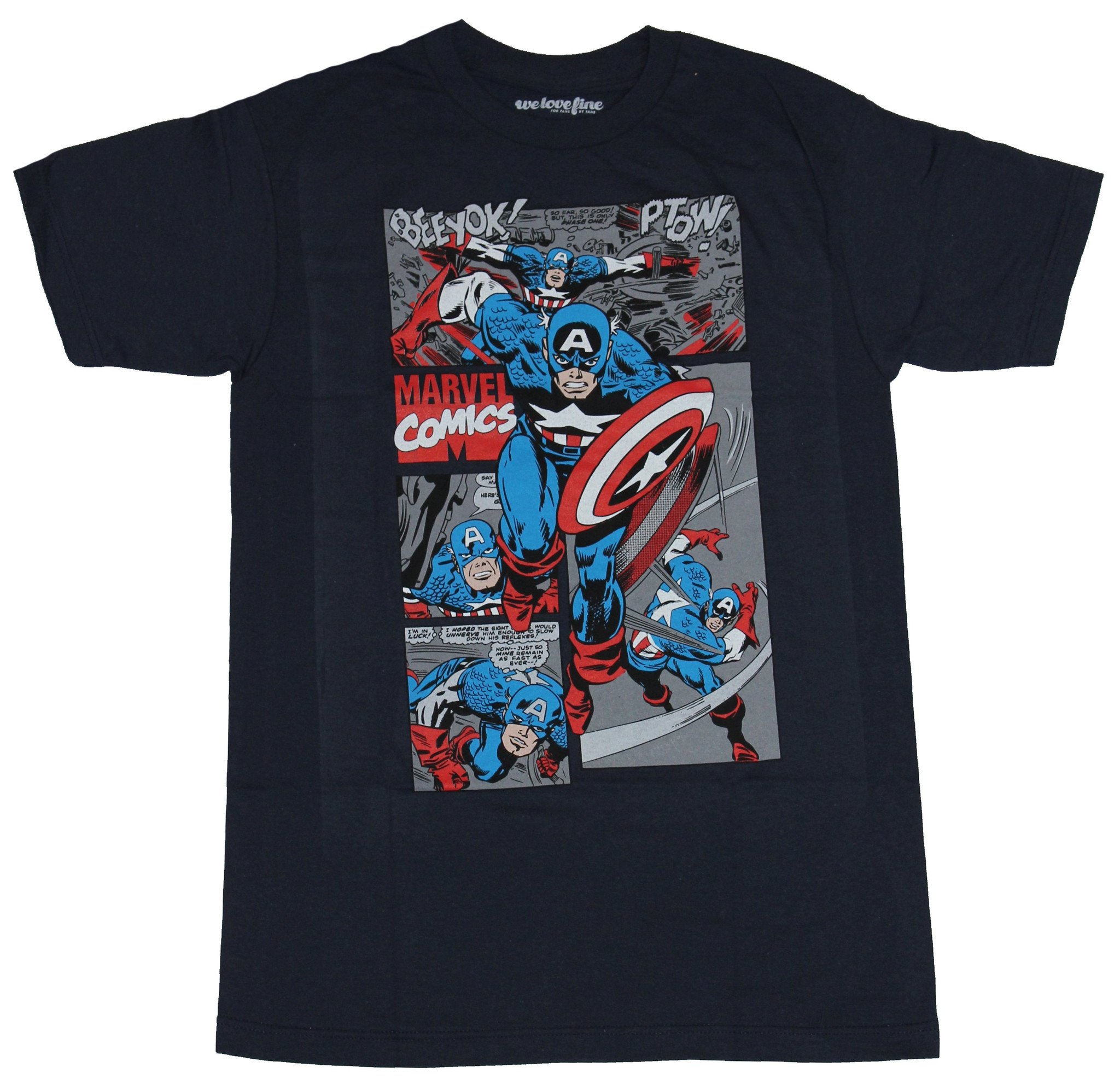 This blue 100% cotton tee is perfect for fans of captain america.