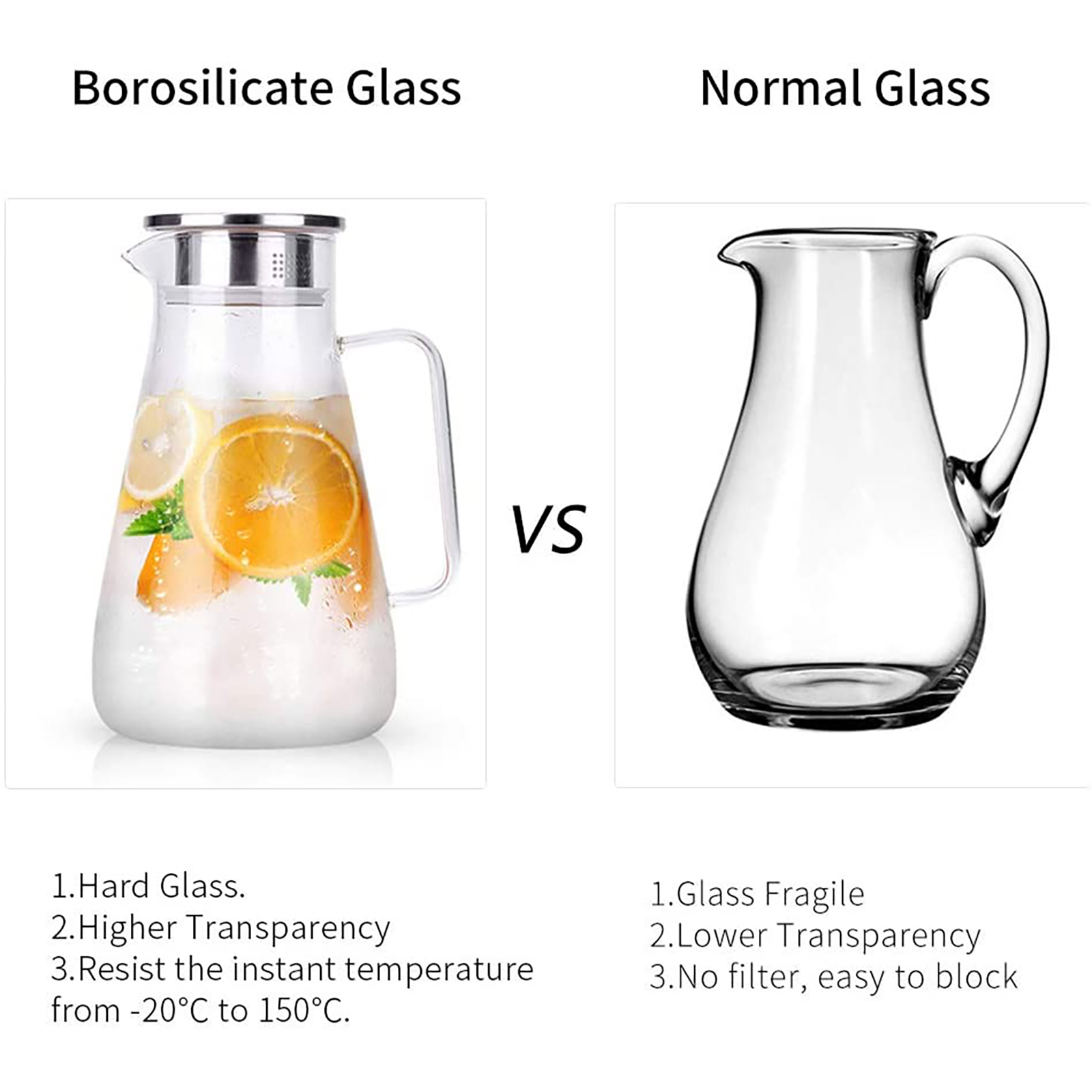 ✅ CONSTRUCTED OF BOROSILICATE GLASS - Disheswasher Safe, Superior resistant to use, the pitcher is thicker and has been double-annealed to give it extra durability