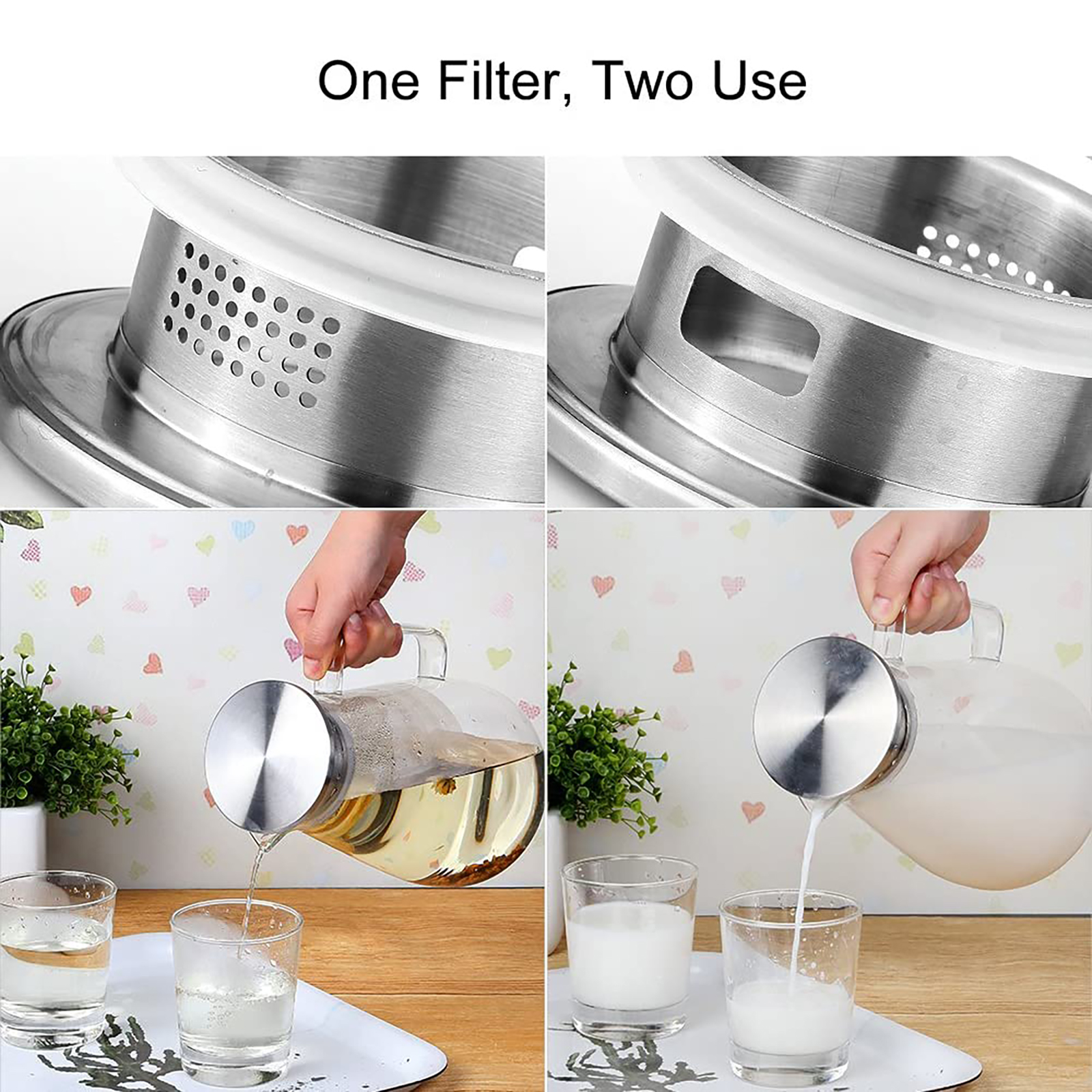 ✅ UNIQUE DESIGN-The lid with filter is made from stainless steel, it is perfect for keeping the ice cubes, sliced fruit, tea bags inside the beverage. Specially designed with non-dripping spout and the ergonomically designed handle make it easy to hold and pour. Easy to cleanSpecifiction: