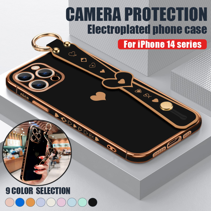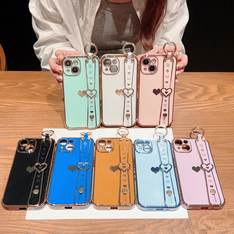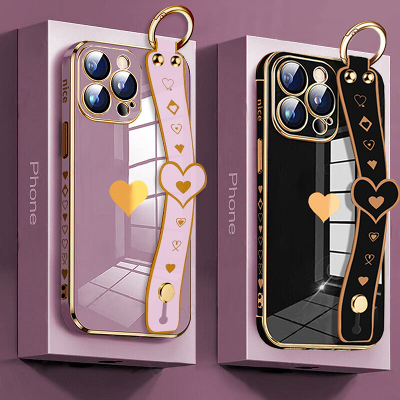 For iPhone 14 13 12 11 Pro Max XS XR 8 7 Love Heart Strap Soft Case Cover