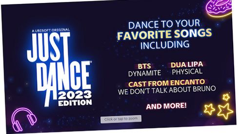 Welcome to a new era of dance with Just Dance 2023 Edition! Now with online multiplayer, personalization, 3D immersive worlds, and new songs and modes year-round, you can experience a never-ending dance party all year long! Additional content made available on a rolling basis for a limited time during the 12 months following launch of the game. Download and high-speed internet connection required. Just Dance 2023 2022 Ubisoft Entertainment.