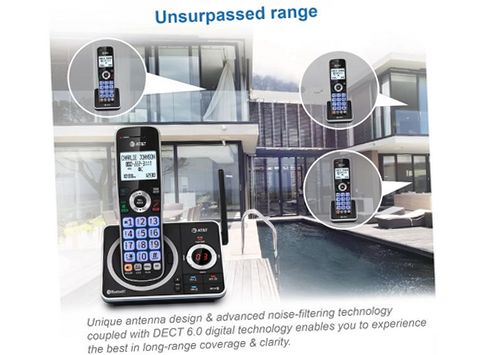 With the AT&T DLP72412 DECT 6.0 2-Handset Cordless Phone featuring unsurpassed range, Bluetooth Connect to Cell, and Smart Call Blocker, you won't have to worry about unwanted calls waking you up in the middle of the night or tying up the line. Robocalls are automatically blocked from ever ringing through - even the first time. You can also permanently blacklist any number you want with one touch. Bluetooth Connect to Cell technology on the AT&T DLP72412 DECT 6.0 Cordless Phone lets you receive cell and/or landline calls from one home phone system. With the touch of a button, enjoy the high-tech benefits your smart phone offers. Even if your smart phone is in a different room, you can still access Siri or Google Now from the cordless handsets. Place a call, write or read a text, and perform all other actions these services offer.