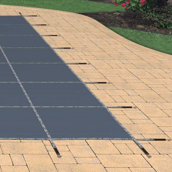 Loop-Loc - 20 x 40 Gray Mesh Rectangle Safety Cover for Inground Pools