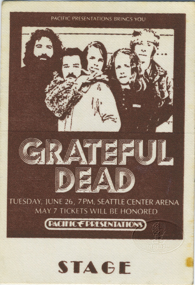 Unused GRATEFUL DEAD 1973 backstage pass for the performance at the Seattle Center. Measures 3" x 4 1/2". Excellent condition. Paper backing still attached. GUARANTEED AUTHENTIC.