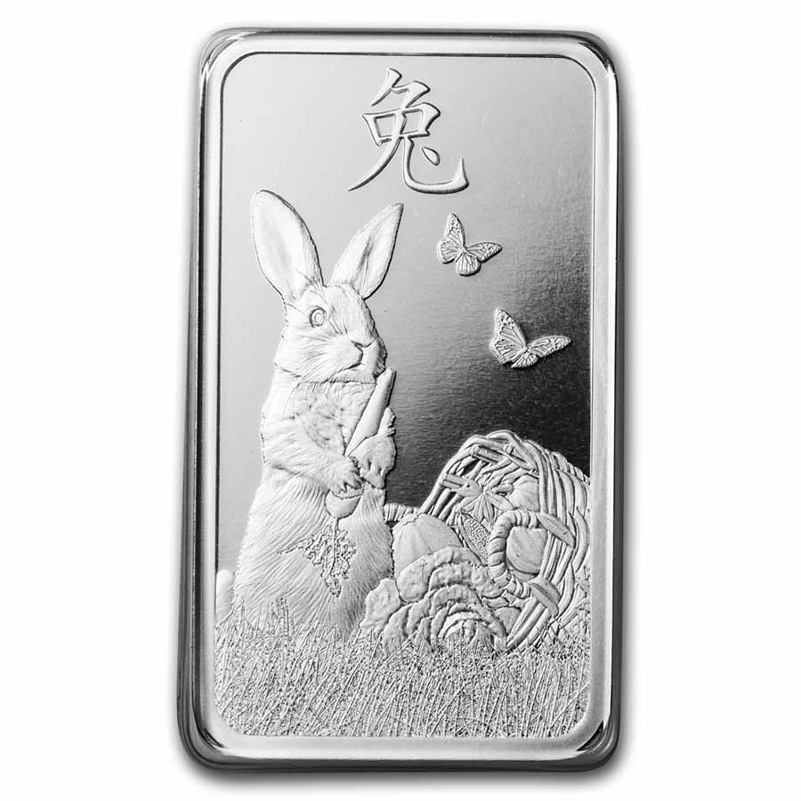 Add this 1 oz Silver PAMP Year of the Rabbit bar to your cart today!
