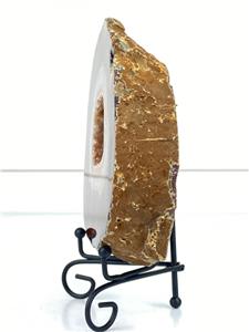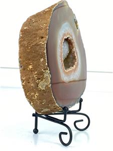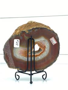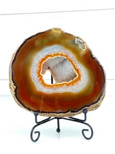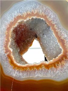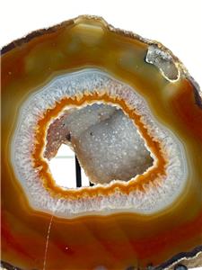 -Very nice thick agate slice! Deep orange rust brown outer layer to crystal. Druzy open center. Small open center to crystal at upper edge.