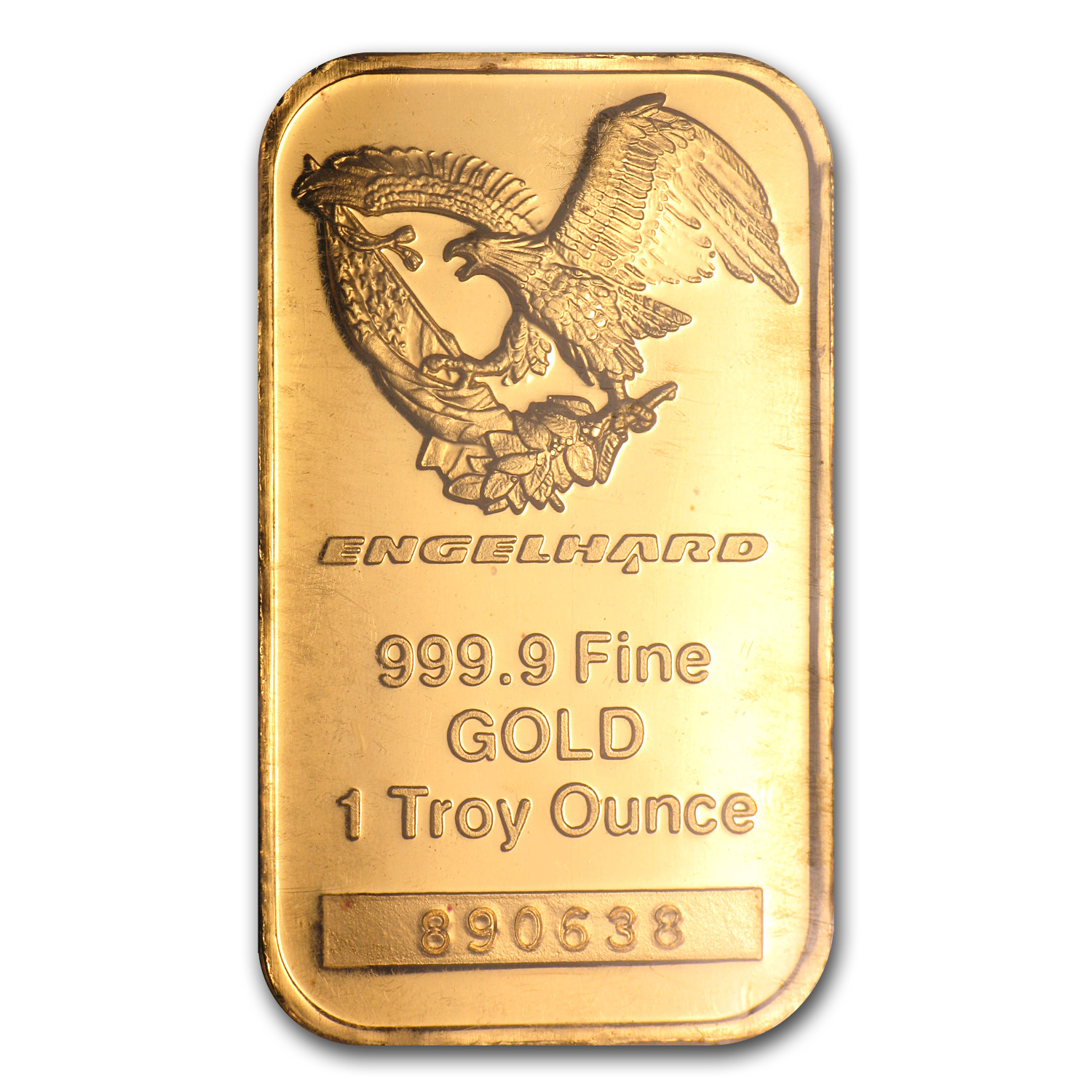 1 oz Gold Bar - Engelhard ('Eagle' logo, In Assay)