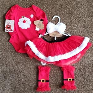 Baby Girls Baby Essentials 4 pc Dress Me Up Santa Outfit--Bodysuit, Tutu Skirt, Leg Warmers & Headband