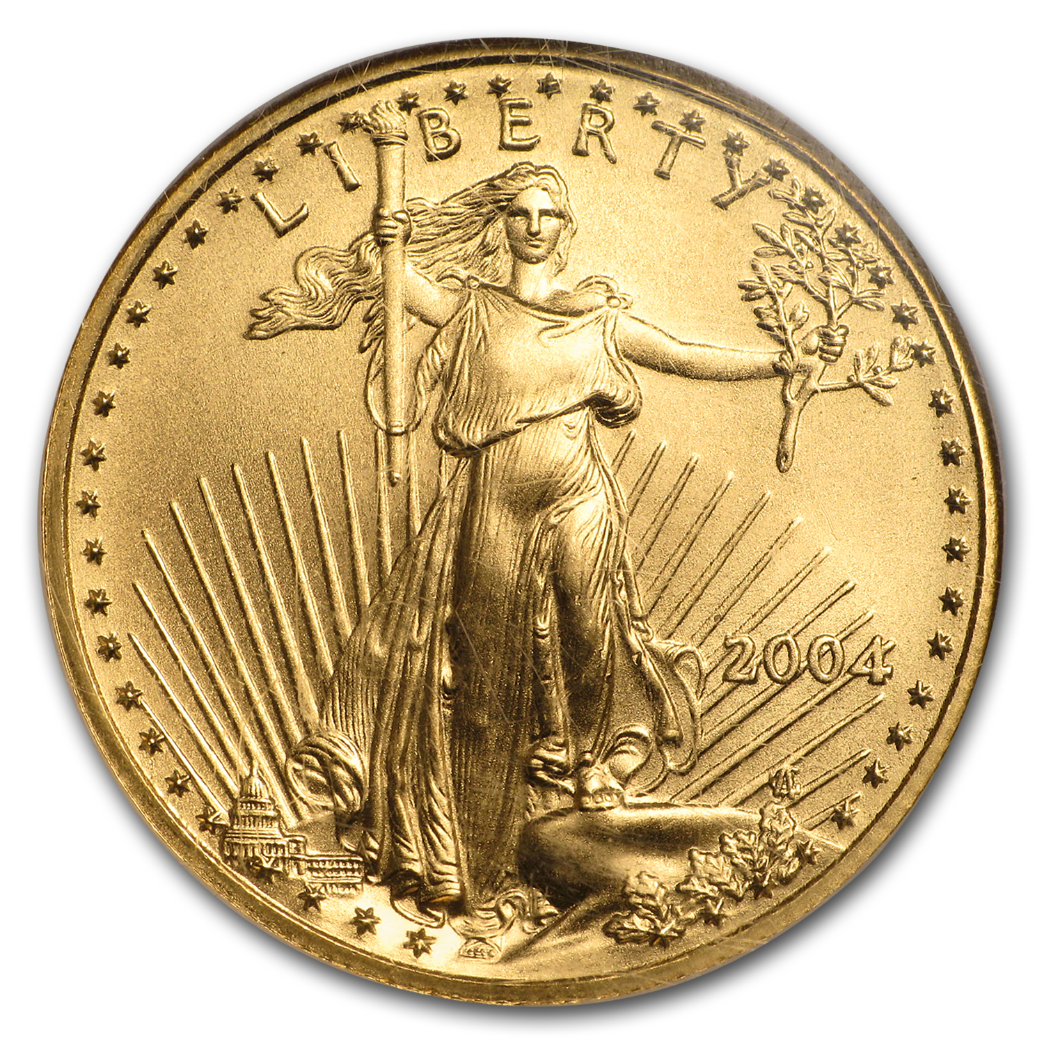 Containing a half ounce of Gold and featuring iconic designs, it is easy to see why the Gold American Eagle is the most popular Gold coin in the United States. Add this 2004 1/2 oz Gold Eagle to your cart today!