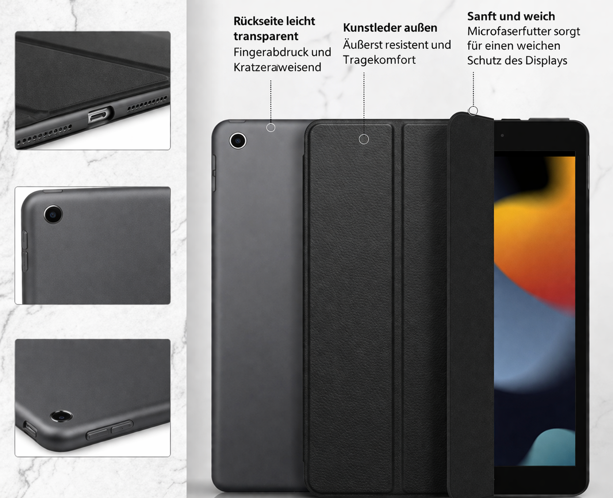 • Integrierter Stifthalter für Apple Pencil / Stylus bei den marmorierten Modellen