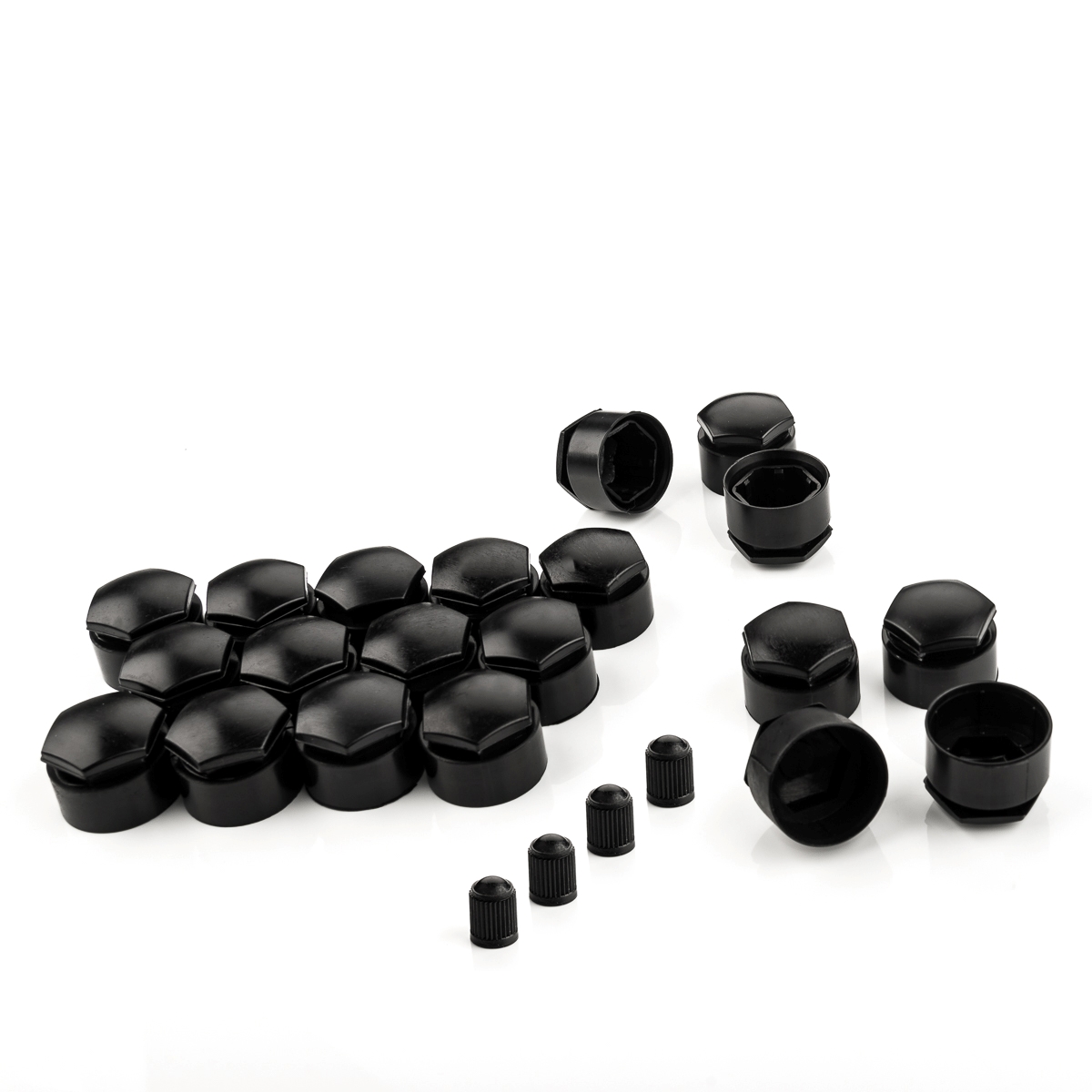 • 1x Set (16x Abdeckkappe + 4x Abdeckkappe diebstahlhemmend + 4x Ventilkappen)