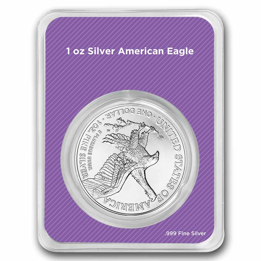 APMEX individually seals each 1 oz Silver American Eagle to ensure that the authenticity and condition of each round is protected after they are removed directly from the boxes. Each coin is placed in a protective authentication card composed of a non-reactive plastic polymer to protect your coin's finish.