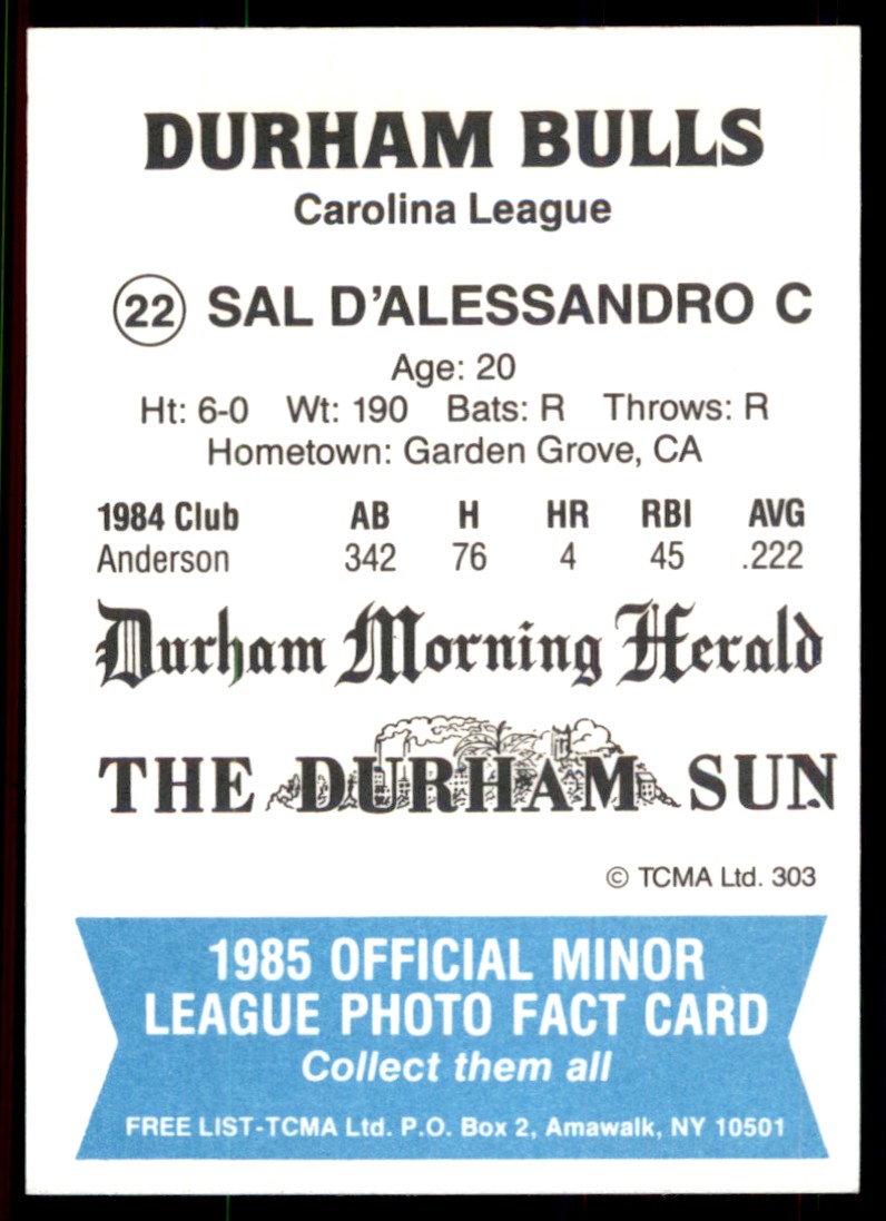 1985 TCMA Minor League 22 Sal D'Alessandro