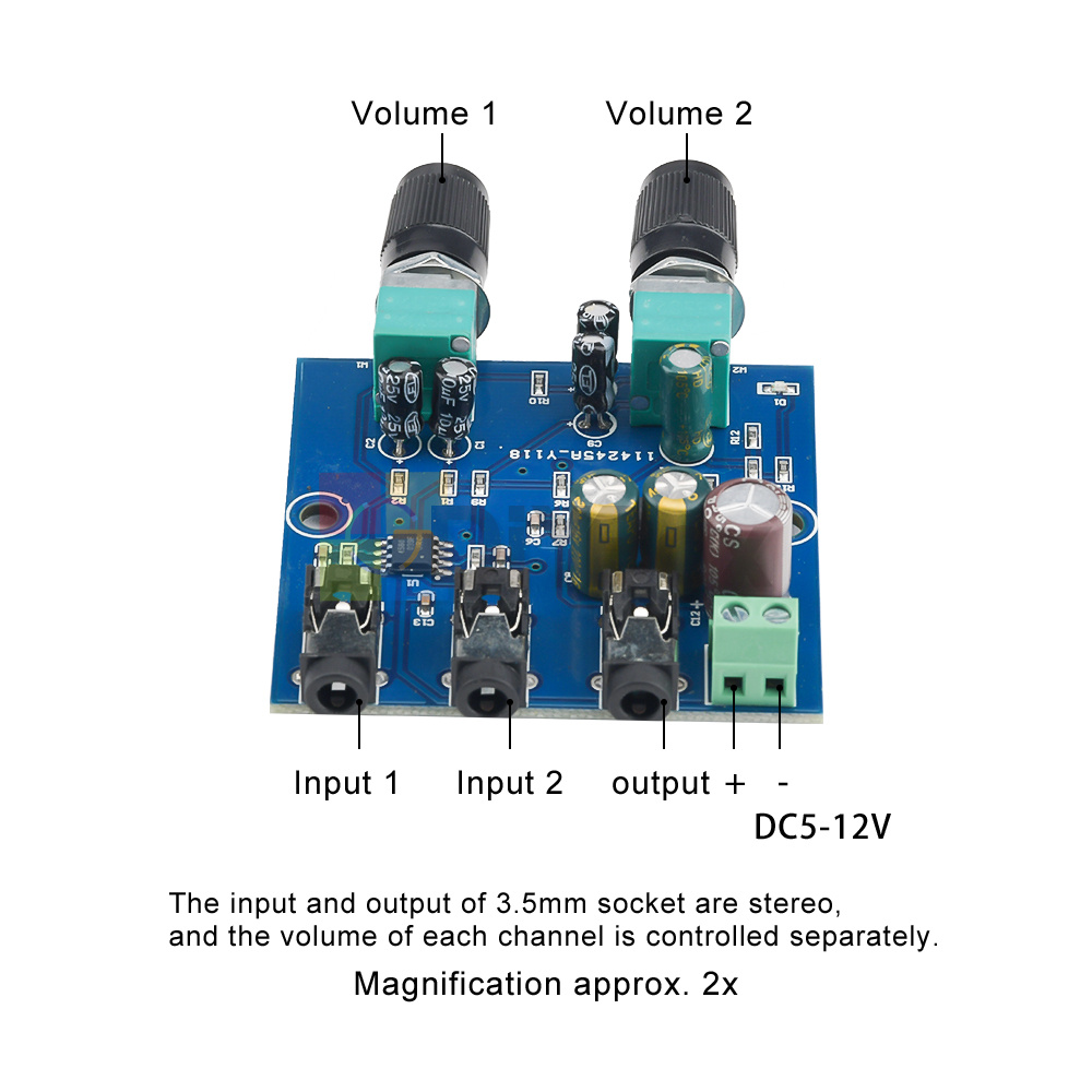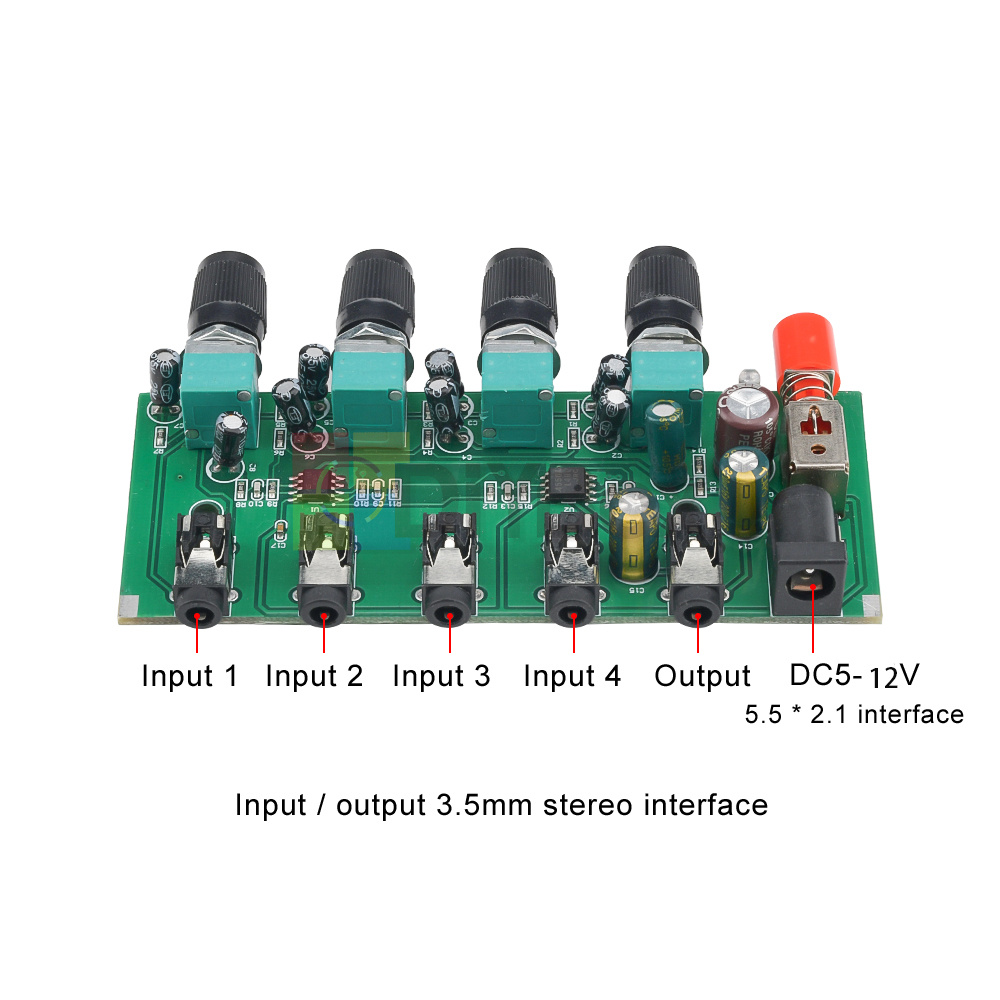 DC 5V-12V Stereo Audio Signal Mixer Board Mix 2way 4way Input 1way Output 3.5mm