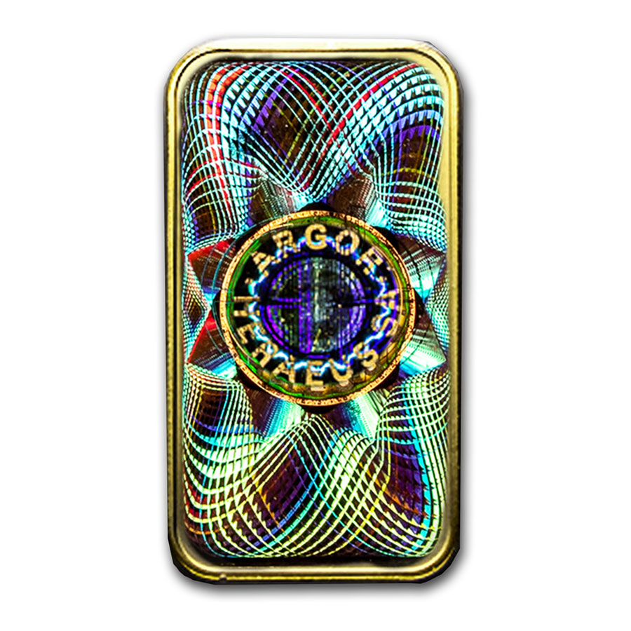 - Obverse: Depicts the Argor-Heraeus stamp with the weight and purity of the bar.
