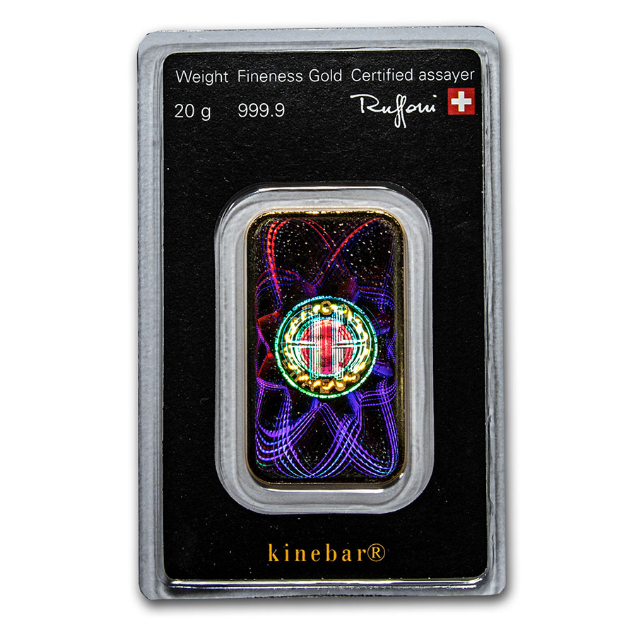 This strongly counterfeit-protected 20 gram Gold KineBar is an ideal choice for investors looking to add to their Gold bullion holdings. Add this 20 gram Gold KineBar to your cart today!