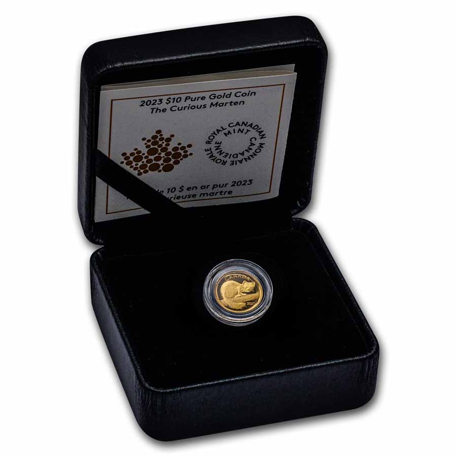 Struck on a 1/20 oz Gold blank for greater affordability, this baby animal portrait is crafted in 99.99% pure Gold. Order this Gold Curious Marten coin today!