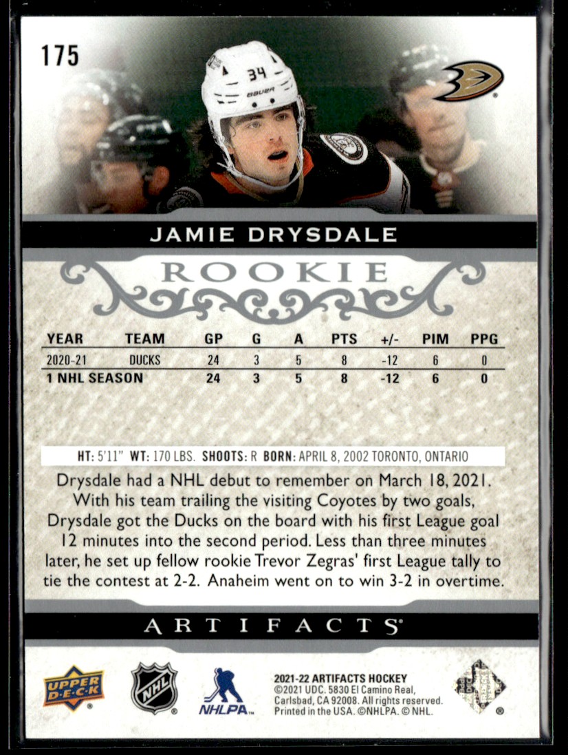 2021-22 Upper Deck Artifacts 962/999 175 Jamie Drysdale
