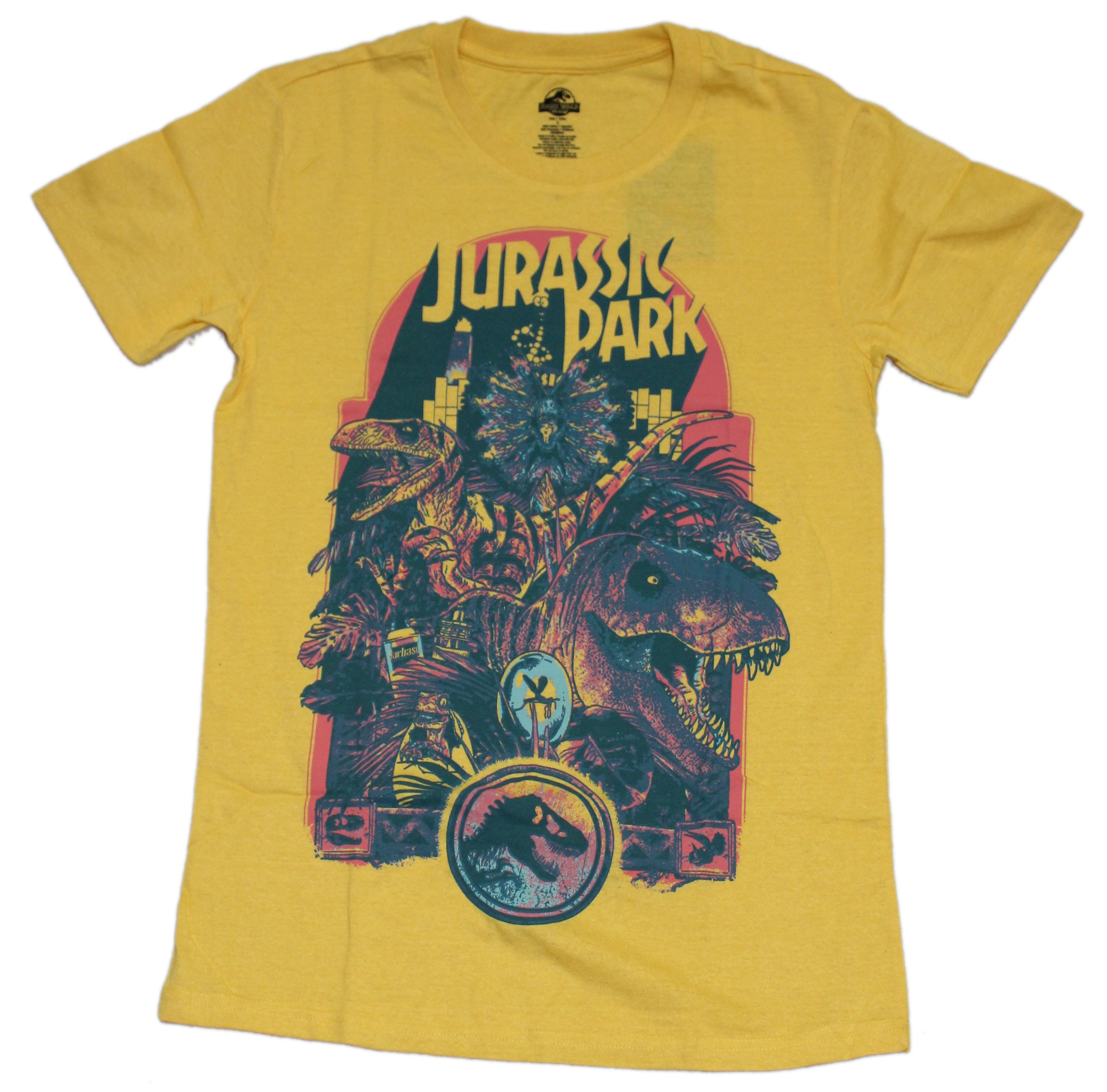 Jurassic Park New Adult T-Shirt - Pastel Colored Dinosaurs Collage Logo