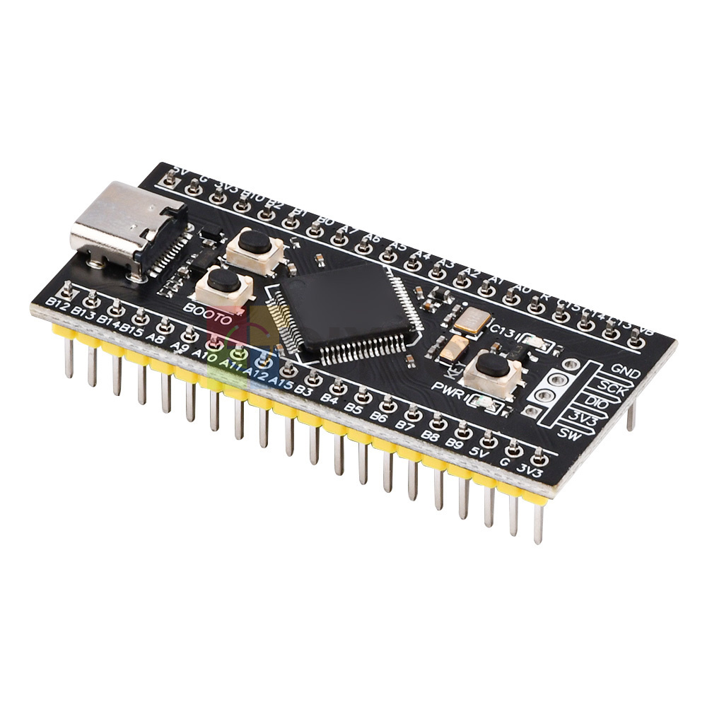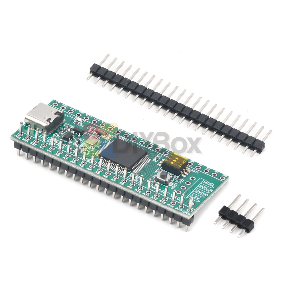 Use lead-free process, send 2 rows of row pins and SWD download 4PIN bend pins, more convenient and environmental protection