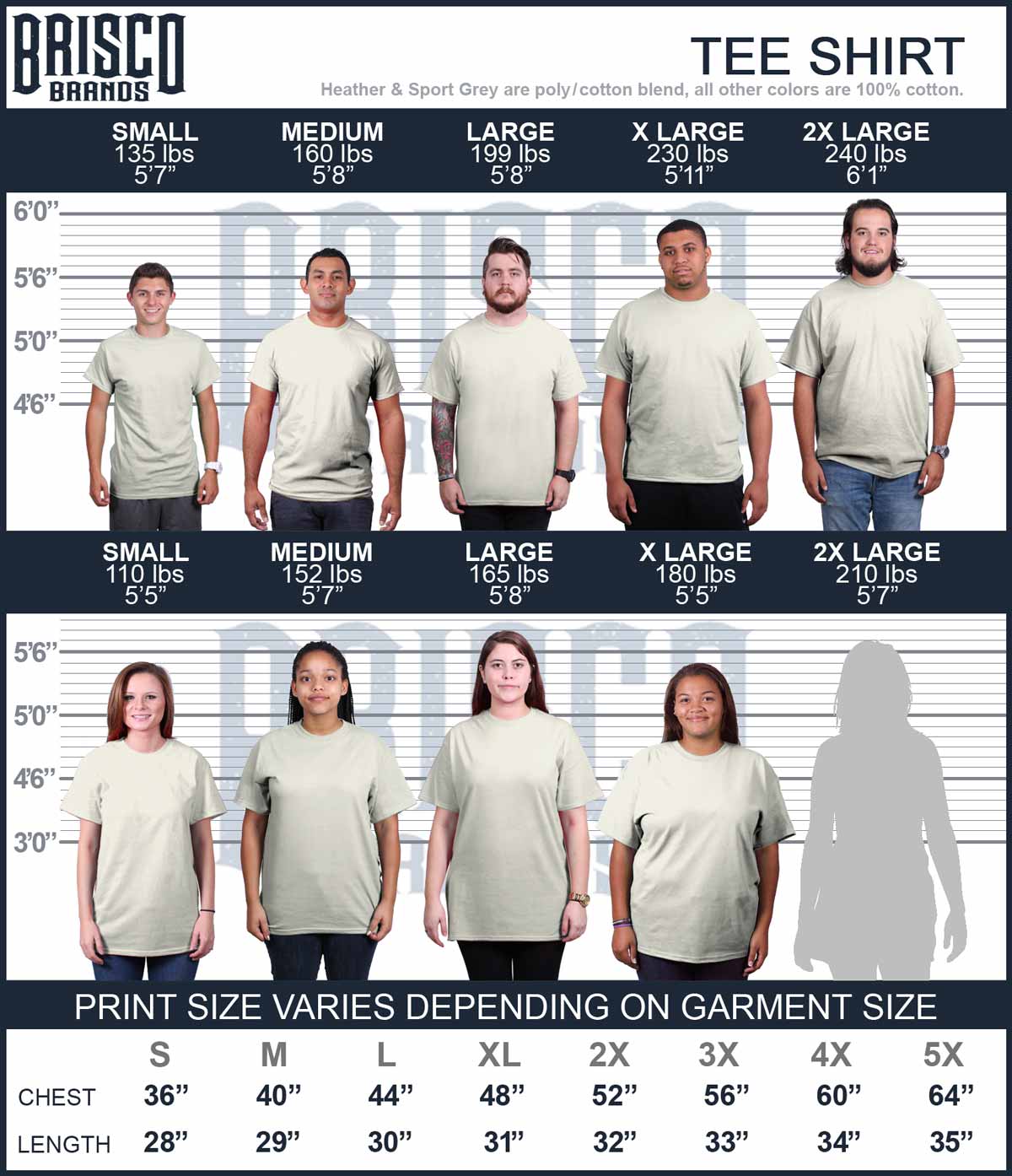 Say hello to your new favorite soft and comfy t-shirt, from Brisco Brands! This tee has a comfortable fit and is designed to last. This tee will be in heavy rotation in your wardrobe! This classic style t-shirt is made with cotton for breathability and durability. Please note some colors are a cotton polyester blend. Refer to the garment details for more info. The featured Patriotic quality printed graphic is stylish and fun. It will pair well with many of the staple items in your closet, year round! Add trendy fun to your casual outfits with this wardrobe essential. It has a seamless double needle crew neck collar and a tubular fit for minimal torque, so it maintains it's shape wear after wear and wash after wash. It's the perfect addition to your graphic tee collection! All of Brisco Brands shirts are professionally printed in the USA using contemporary technology.