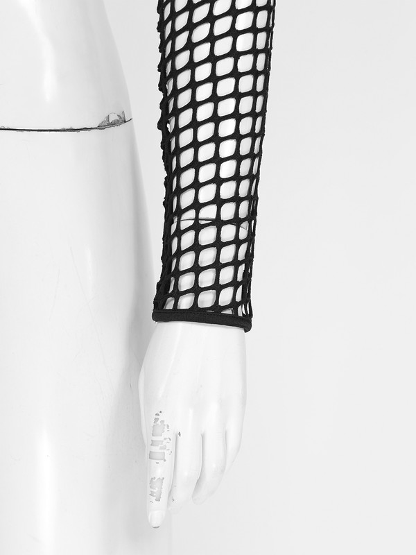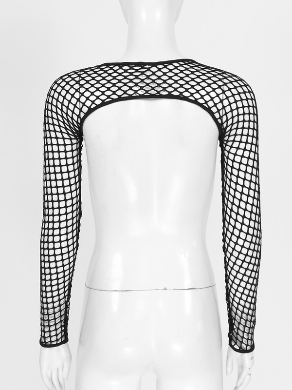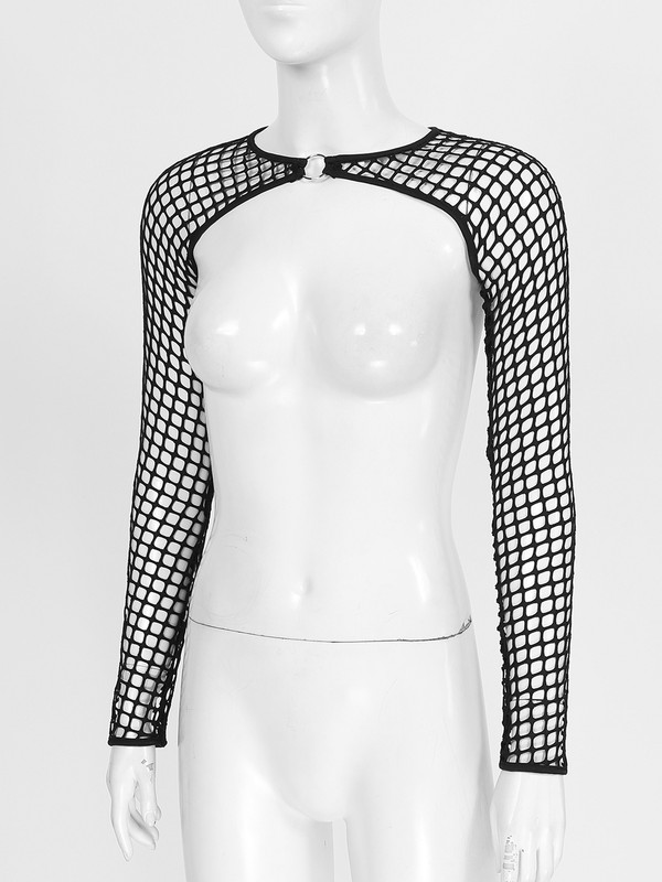 Womens Hollow Out Fishnet Crop Top Cover Ups O Ring Long Sleeve T-shirt.