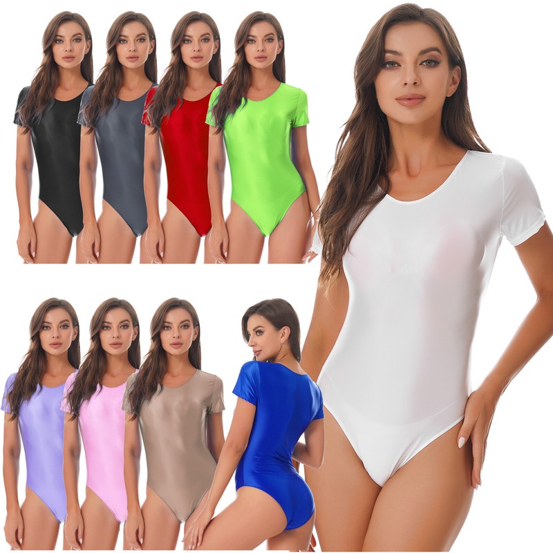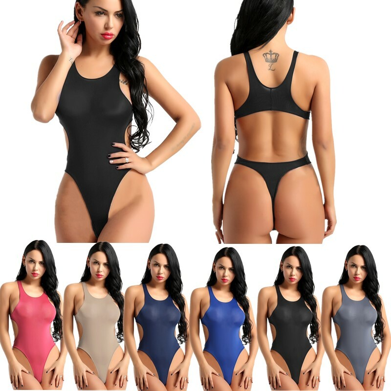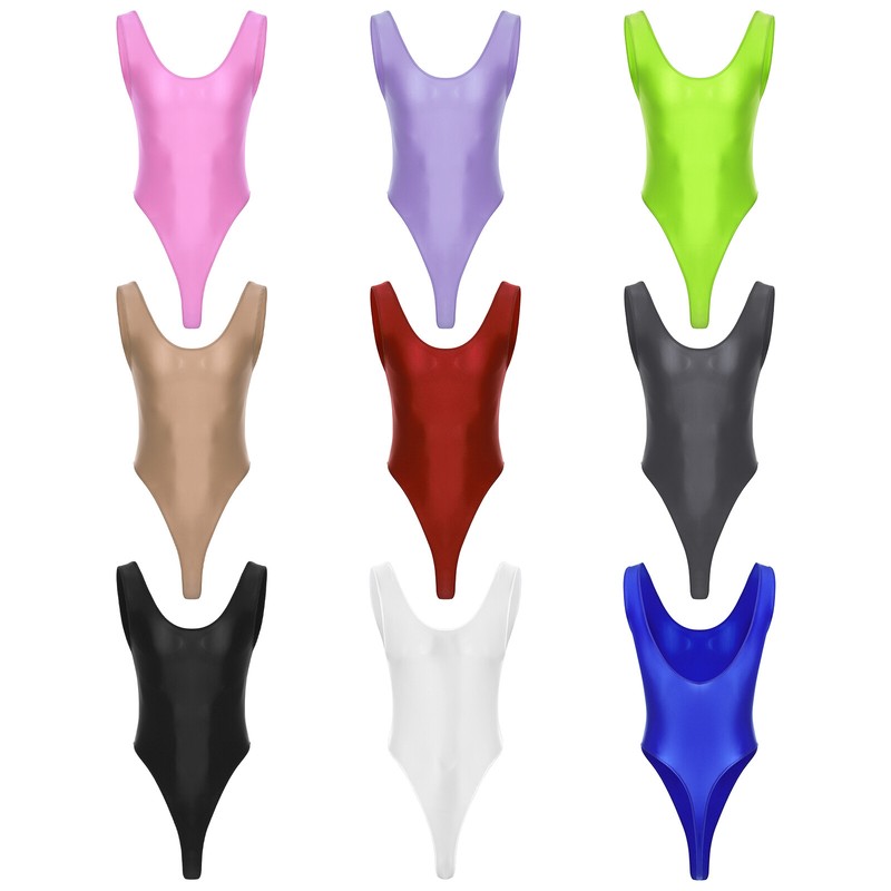 Womens Glossy Sleeveless High Cut Bodysuit One-piece Swimsuit for Yoga Sports.