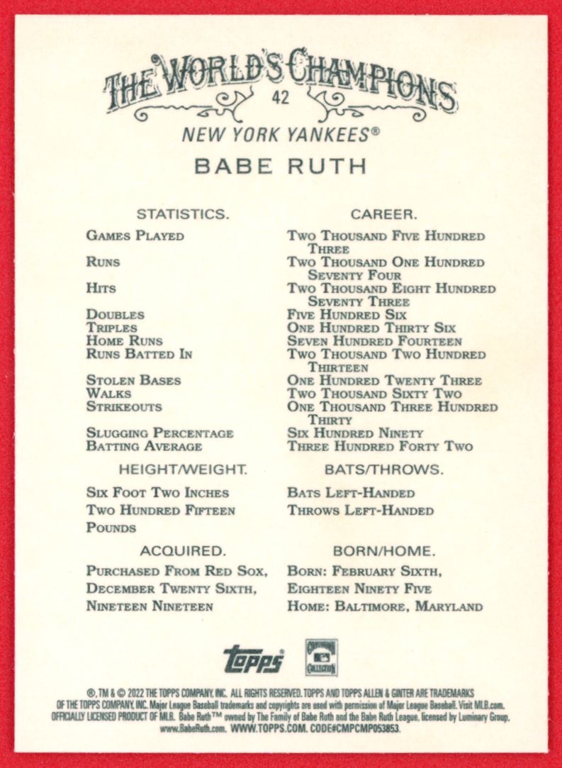 | 2022 Topps Allen & Ginter 42 Babe Ruth |