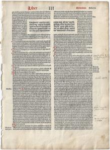 Gothic font in two sizes, printed in red and black. Ecclesiastical laws established at Canterbury surrounded by Lyndewood’s commentary in double columns.