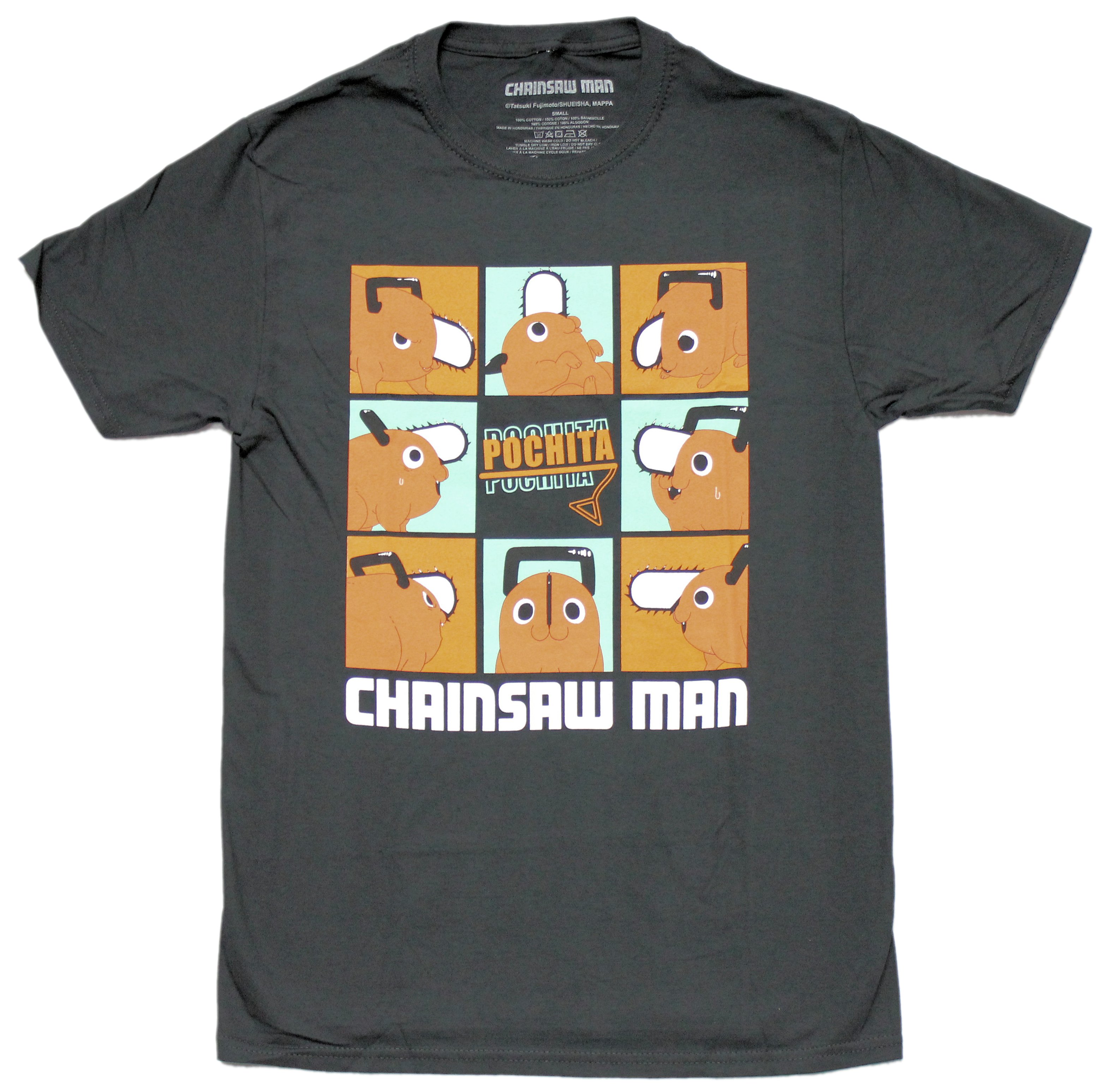 Chainsaw Man mens T-Shirt - Boxed Images of Pochita Around Name