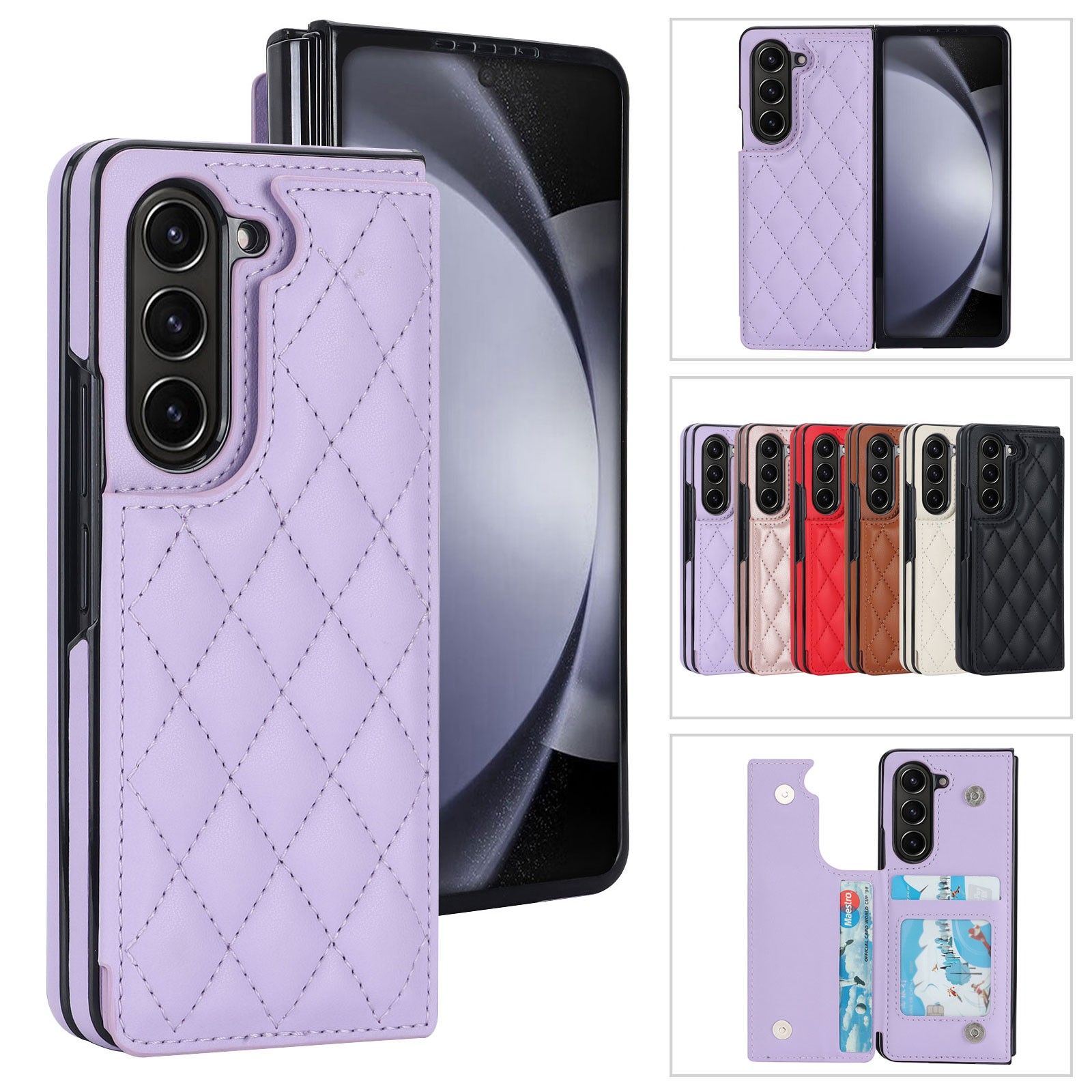 | Luxury Deluxe Grid Leather Back Credit Card Slots Wallet Stand 2in1 Case Cover For Samsung Galaxy Z Fold3 Fold4 Fold5 Fold6 Fold7 |