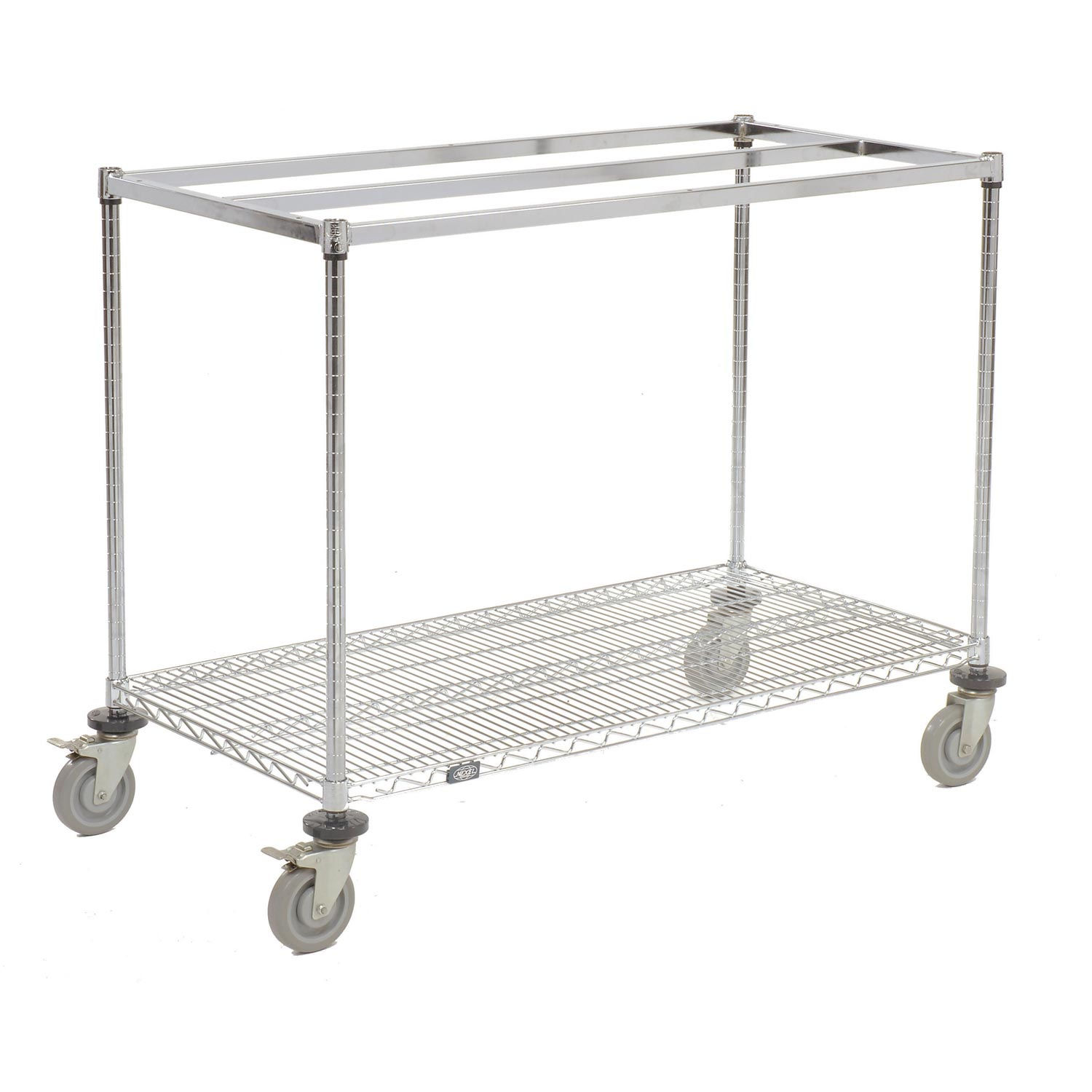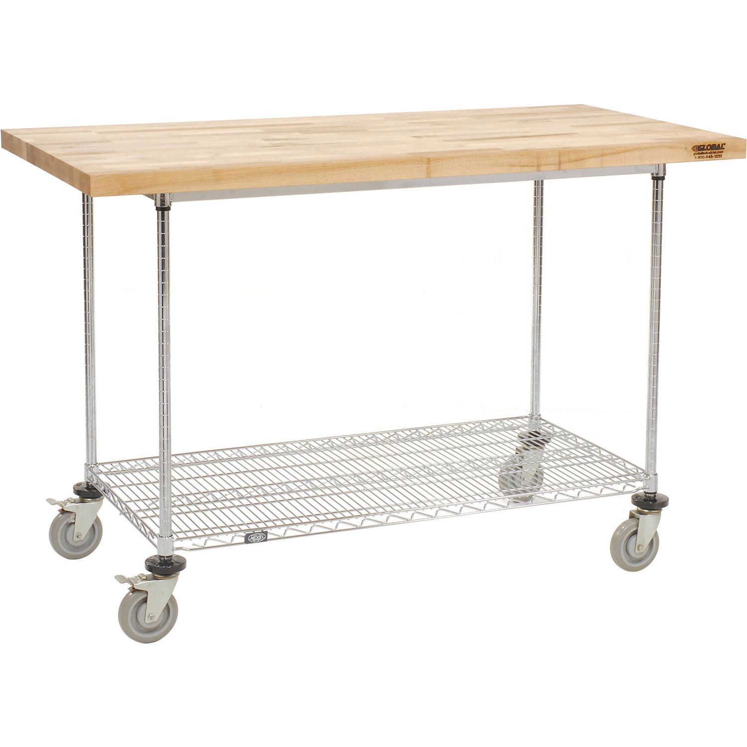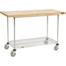 Mobile Workbench with Wire Rack, Maple Butcher Block Square Edge, 60"W x 30"D, Chrome, Lot of 1