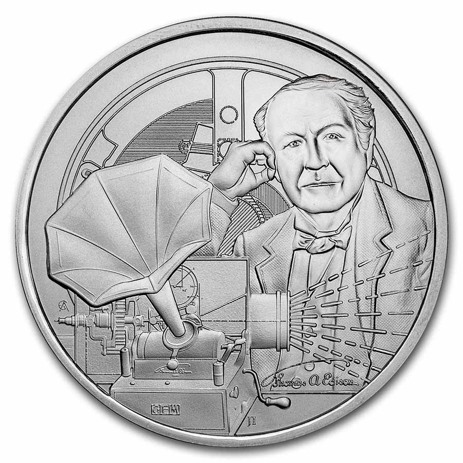 The next release in the popular series of coins celebrating famous Icons of Inspiration features Thomas Edison, one of the most influential inventors throughout history. Born with partial deafness, this became the motivation behind his behavior and career, which resulted in a world-record 1,093 patents in which he singly or jointly owned.
