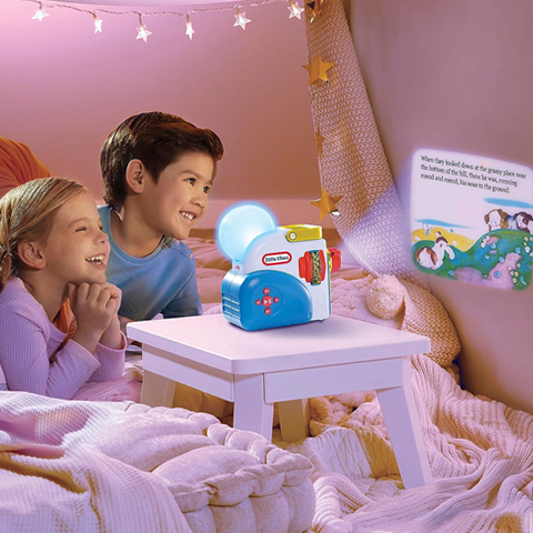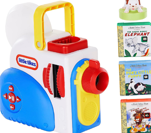 Storytime comes to life with the easy-to-use Little Tikes® Story Dream Machine. Children can watch, listen, and read along to their favorite stories. This unique, fun experience develops beginning reading skills and word recognition and will get kids excited about reading. Includes 3 Little Golden Book stories: The Poky Little Puppy, Tawny Scrawny Lion, and The Saggy Baggy Elephant and The Poky Little Puppy character that creates more light effects in nightlight mode