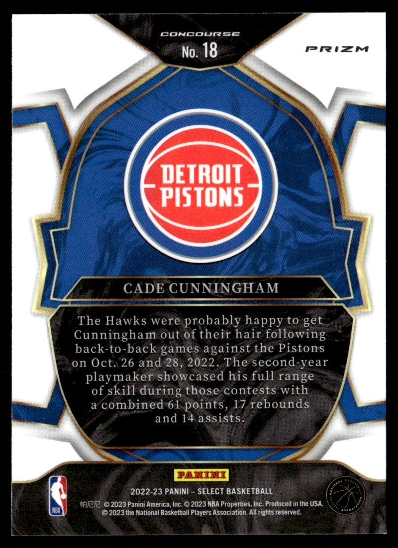 2022-23 Select Blue Prizm 18 Cade Cunningham