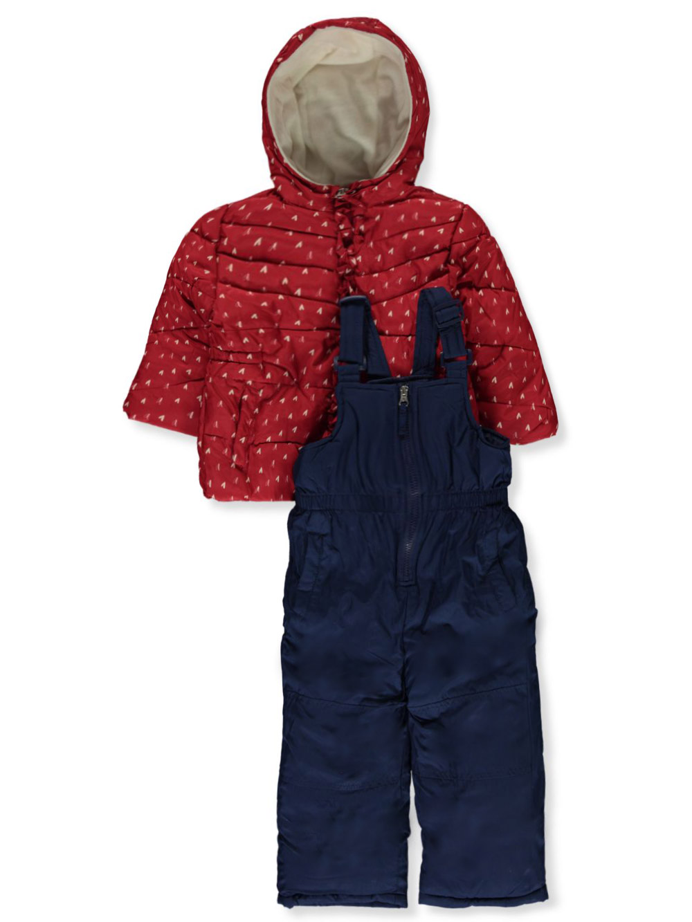 Pink Platinum Baby Girls' 2-Piece Heart Snowsuit Set - red, 12 months