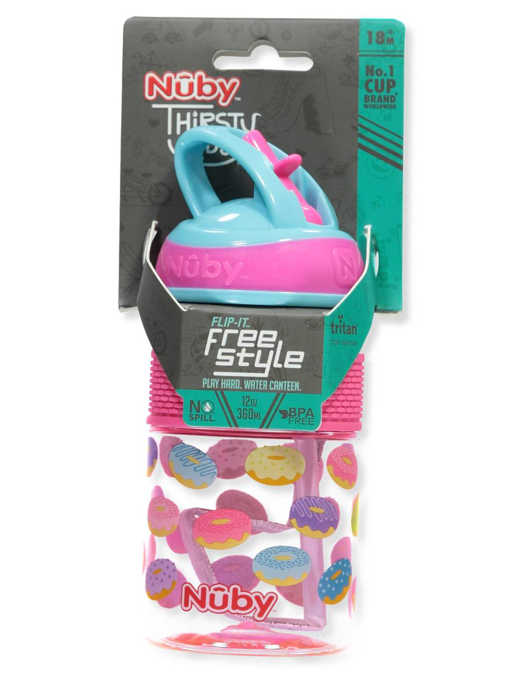 Perfect for thirsty kids on the go, this Nuby sipper cup is specially engineered to prevent drips and spills. Nuby Flip-It sipper cup Silicone band for easy gripping Vari-Flo valve protects against spills and leaks Pattern as shown 18M + BPA free Hand wash Imported