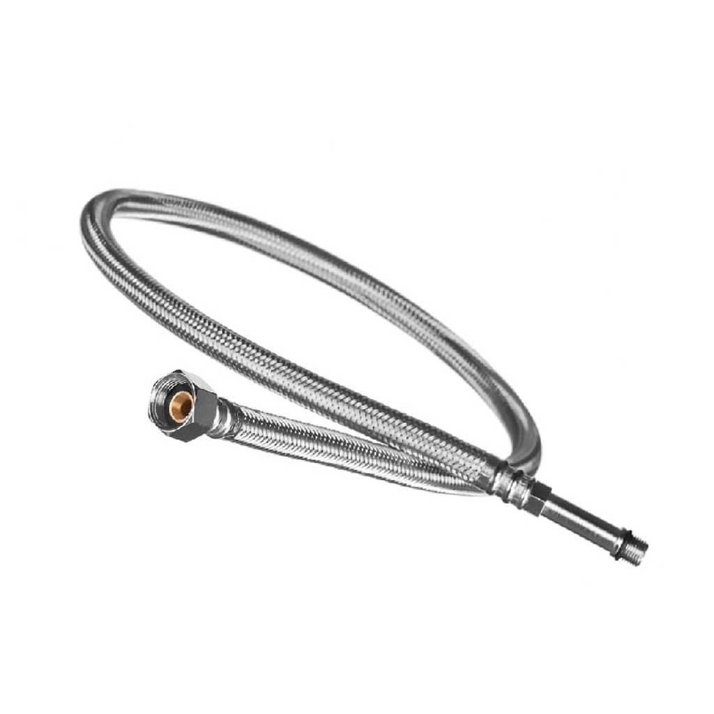 Single braided and flexible connection tail in 10mm (M10) Monobloc male tap connector on one and and 3/8 Inch BSP female thread on the other end ideal for kitchen/basin mixer monobloc taps connection to the water source where flexibility of hose pipe is required.