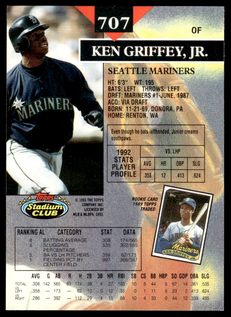| 1993 Stadium Club Baseball Ken Griffey Jr. Mariners #707 |