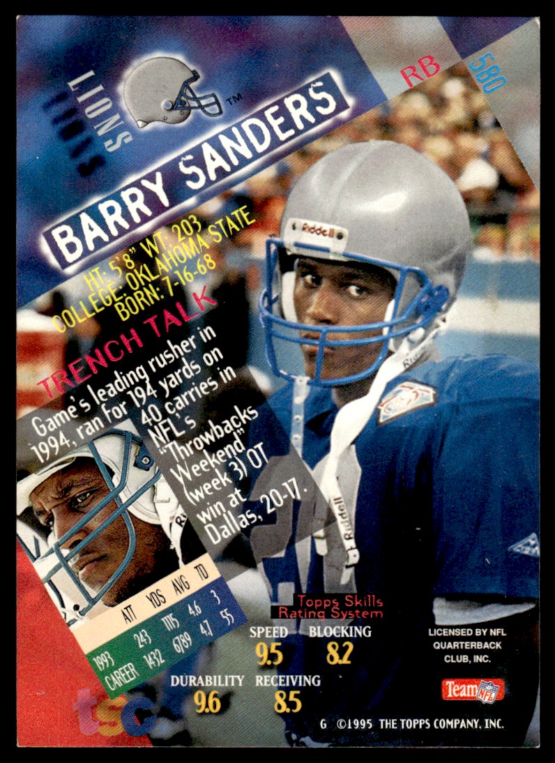 | 1995 Stadium Club Football Barry Sanders Detroit Lions #580 NM |