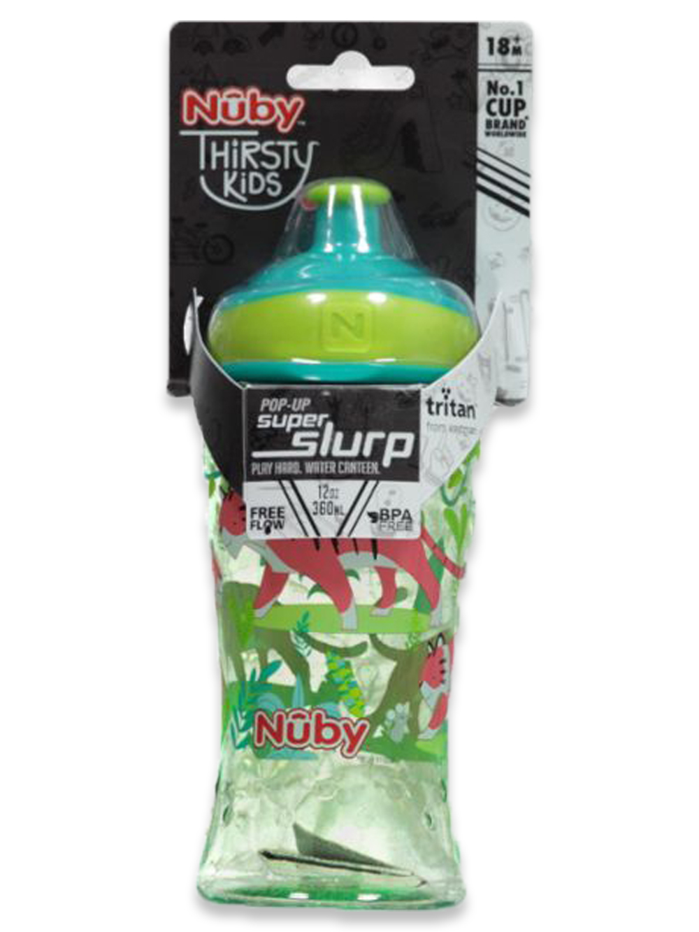 Nuby Baby Boys' 12 Oz. Pop-Up Super Slurp Free Flow Sipper Cup - green/aqua, one size