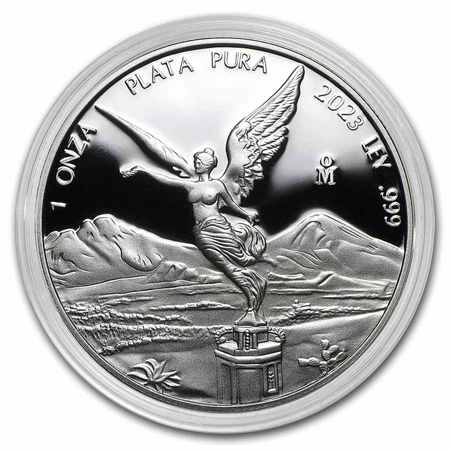 This magnificent Proof Silver coin is a popular choice not only because of its attractive design, but also its mintage at Casa de Moneda de México, the oldest mint in North America. Add this 2023 1 oz Proof Silver Mexican Libertad coin to your cart today!