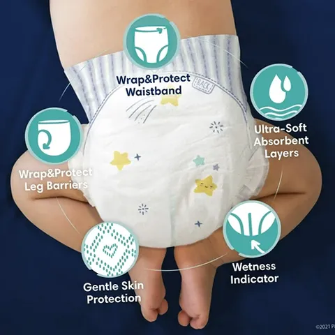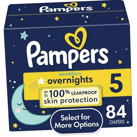 What keeps baby's skin healthy? A diaper that doesn't leave skin wet, especially overnight. That's why new Pampers Swaddlers Overnights absorb wetness better and provide up to 100% leak-proof nighttime skin protection to help keep your baby's skin healthy and protected all night long. New Swaddlers Overnights are designed with a Wrap & Protect Waistband that gently wraps around baby to help protect skin from irritation, and Wrap & Protect leg barriers that protect where leaks happen most. 84 Count