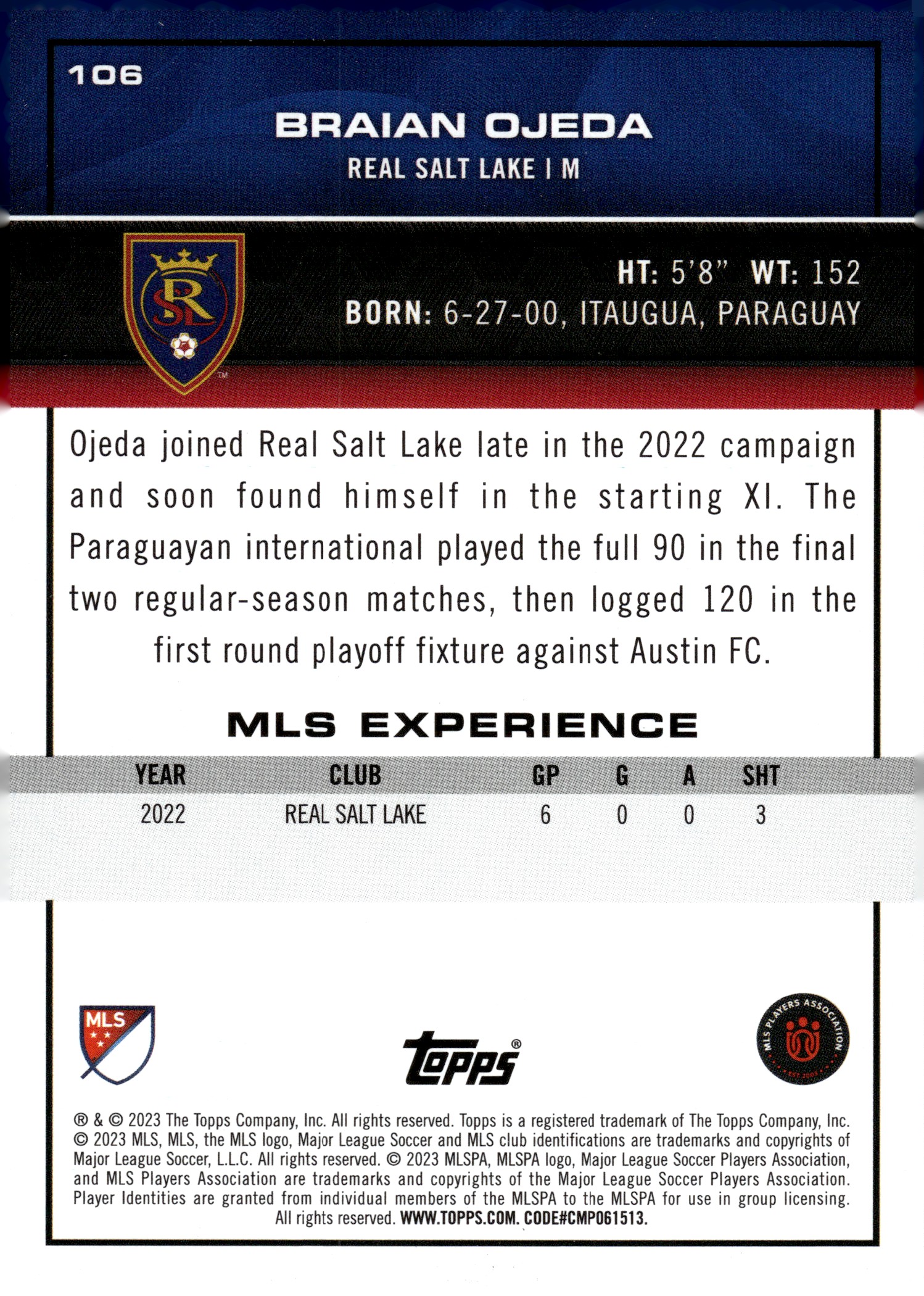 | 2023 Topps MLS Soccer Tile Parallel Braian Ojeda Rookie Real Salt Lake #106 |
