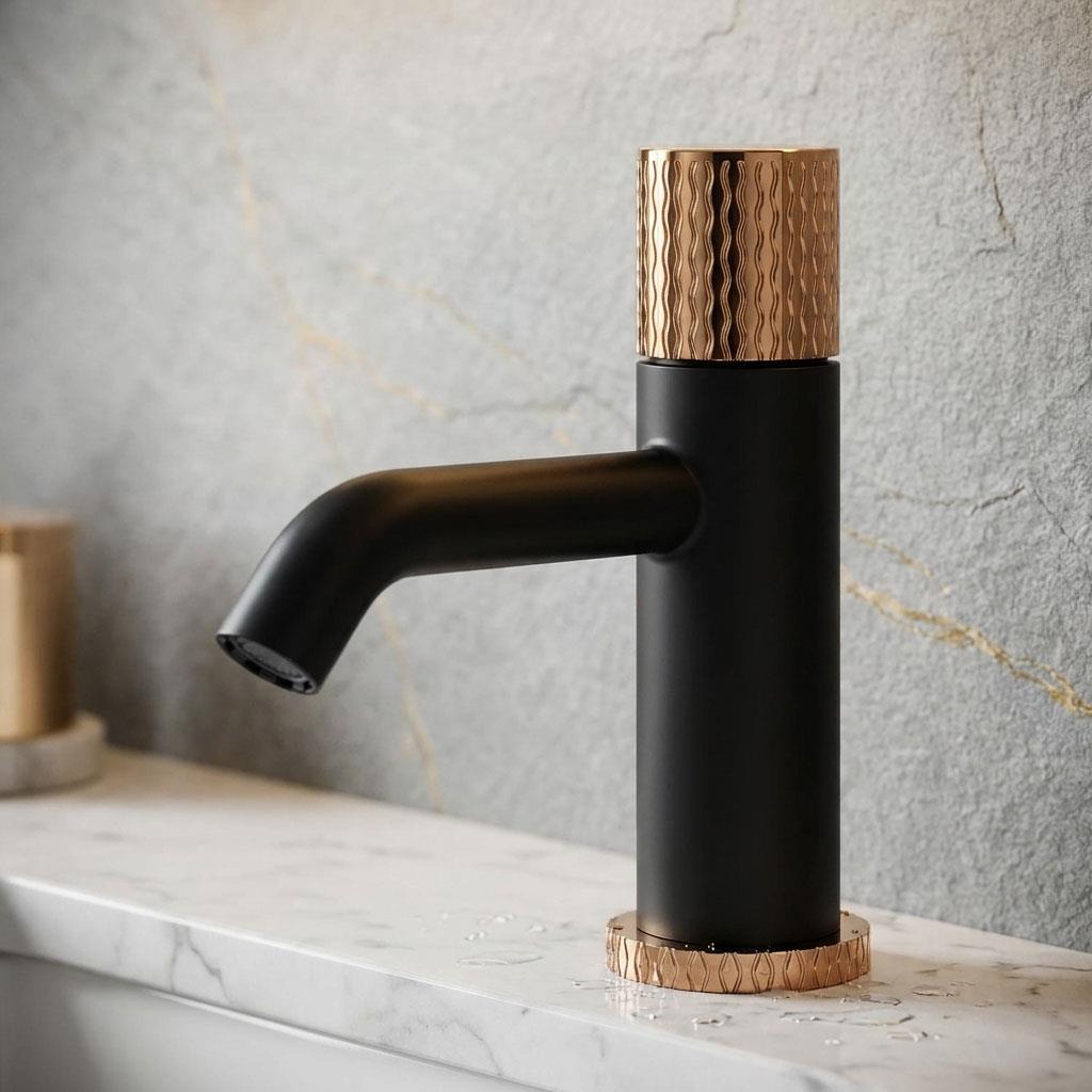 The body of the Invena MOONLIGHT washbasin tap is in fashionable black and is combined with a subtle rose gold handle. This combination makes the handle, engraved with a delicate pattern, illuminate the black like the moonlight in the night sky. The most fashionable combination of colors and the extremely elegant and consistent form of the faucet will add elegance to any room. The faucet comes with a black click-clack cap. Moreover, equipped with a water-saving aerator, it is also an ecological solution. This is a perfect example of how fittings can be functional jewelry for our bathroom.