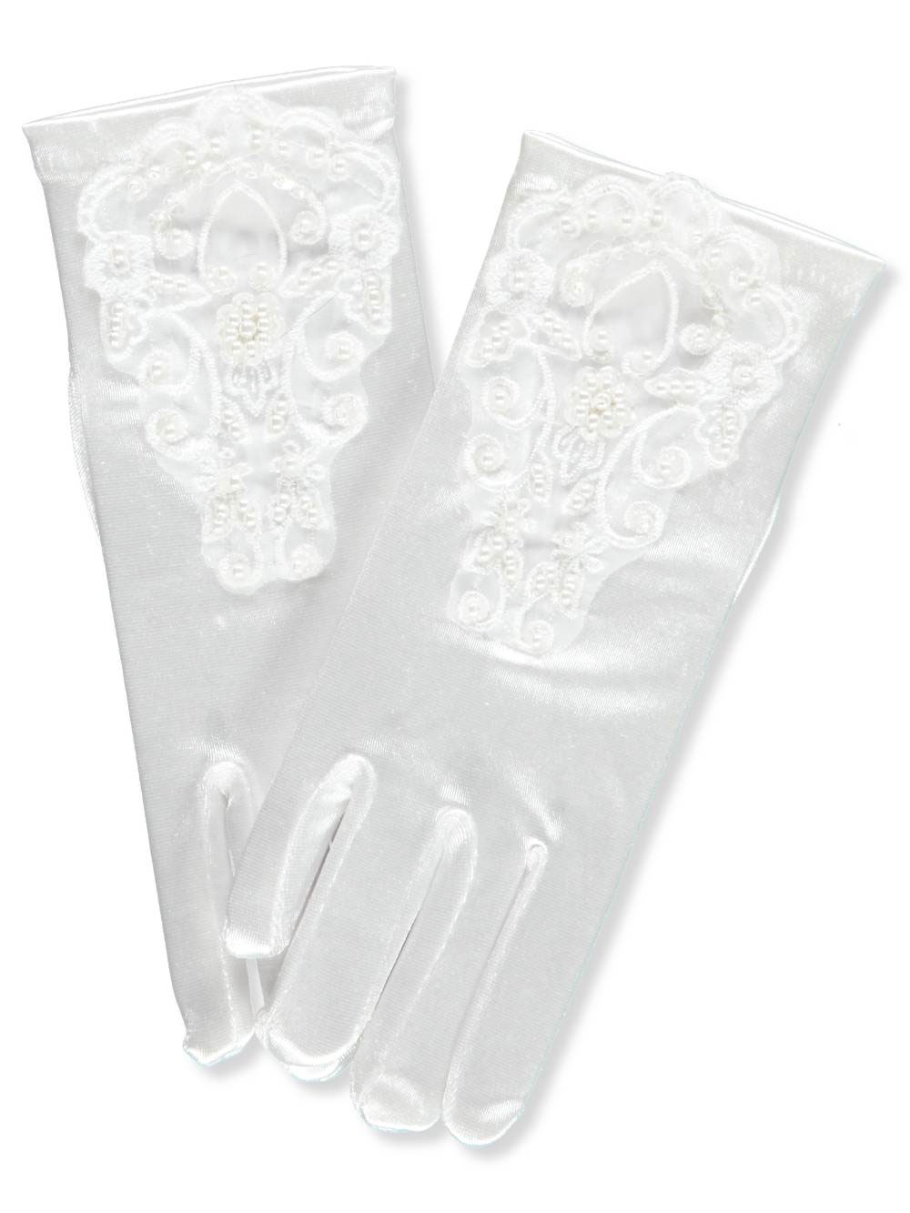 Her special occasion look wouldn't be complete without these elegant gloves from American Exchange. American Exchange dress gloves Poly satin construction Pearly beaded accents Lace trim 100% polyester Imported