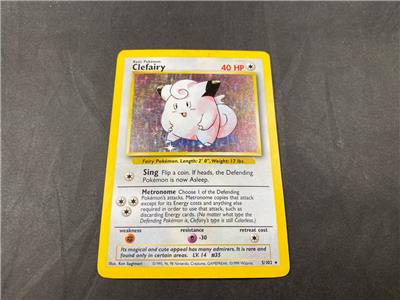 You are bidding on a CLEFAIRY 5/102 POKEMON BASE SET HOLO RARE (SEE PICS FOR CONDITION) The buyer pays $3.50 shipping. Good Luck!!