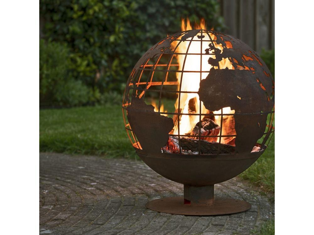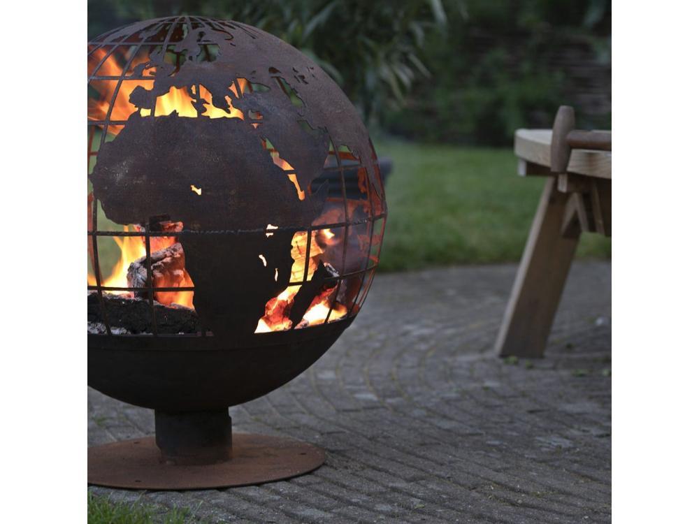 This beautifully crafted fire pit features a unique World Map design, creating a captivating flame display.