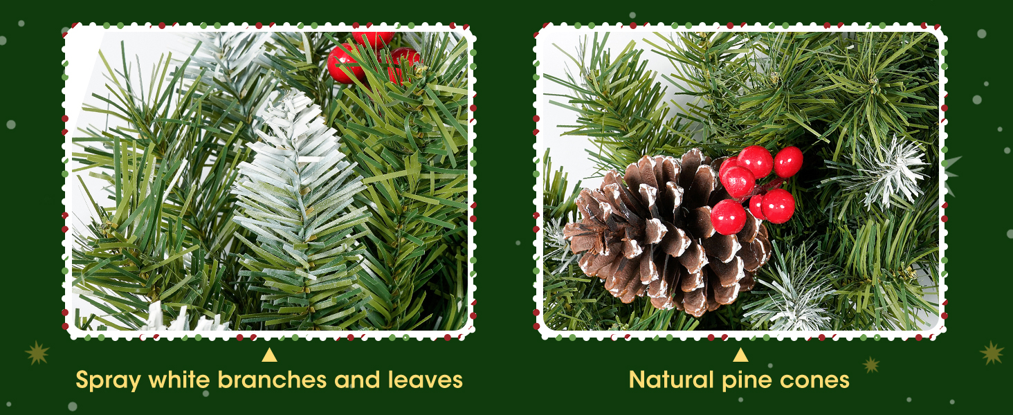 Our Christmas wreaths are super realistic, each wreath is handcrafted with high attention to detail and workmanship to ensure quality and are an indispensable Christmas decoration for the family.