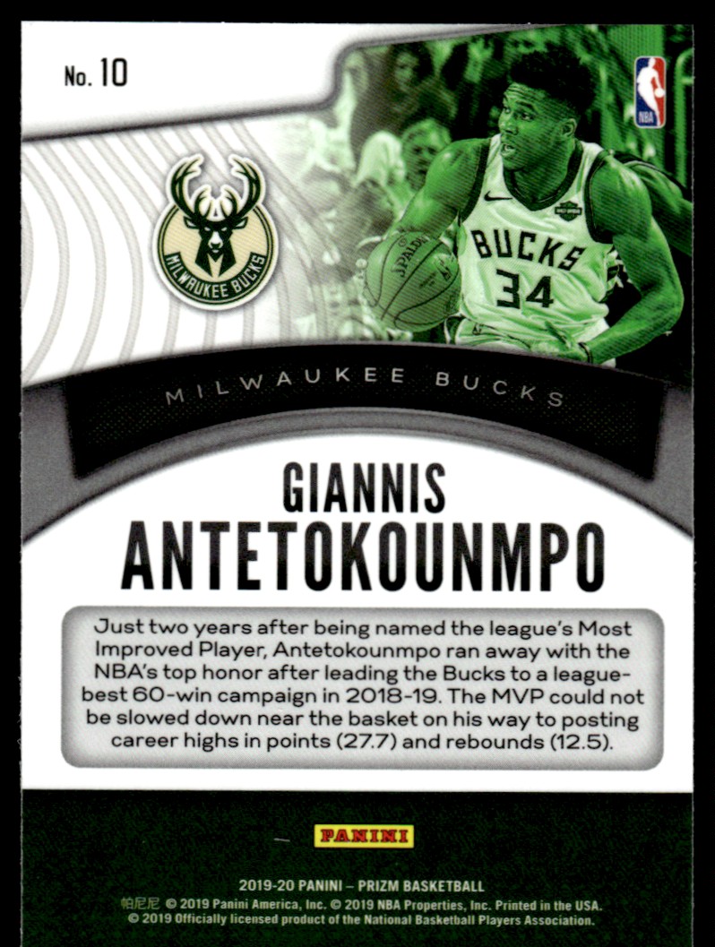 2019-20 Panini Prizm Dominance Green Giannis Antetokounmpo Milwaukee Bucks #10